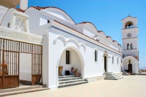 Church of Virgin Mary Kyra Panagia This small church above Kyra Panagia beach is dedicated to the Virgin Mary. It is locally known as the church of Kyra Panagia. Constructed in traditional style and colors, its location offers an amazing view of the sea.