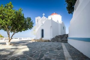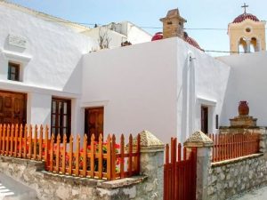 Church of the Assumption Menetes The church of the Assumption of the Virgin Mary in Menetes was constructed in the 19th century. This is the most famous church of the island and gives an amazing view of the surrounding region. For its construction, columns from the ancient site of Arkassa were used.